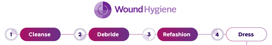 This is why Convatec convened international experts to identify a new approach, the Wound Hygiene Protocol: a four-step model of cleanse, debride, refashion, and dress. This protocol empowers all clinicians (regardless of skill mix or setting) to take proactive steps that drive better outcomes.¹