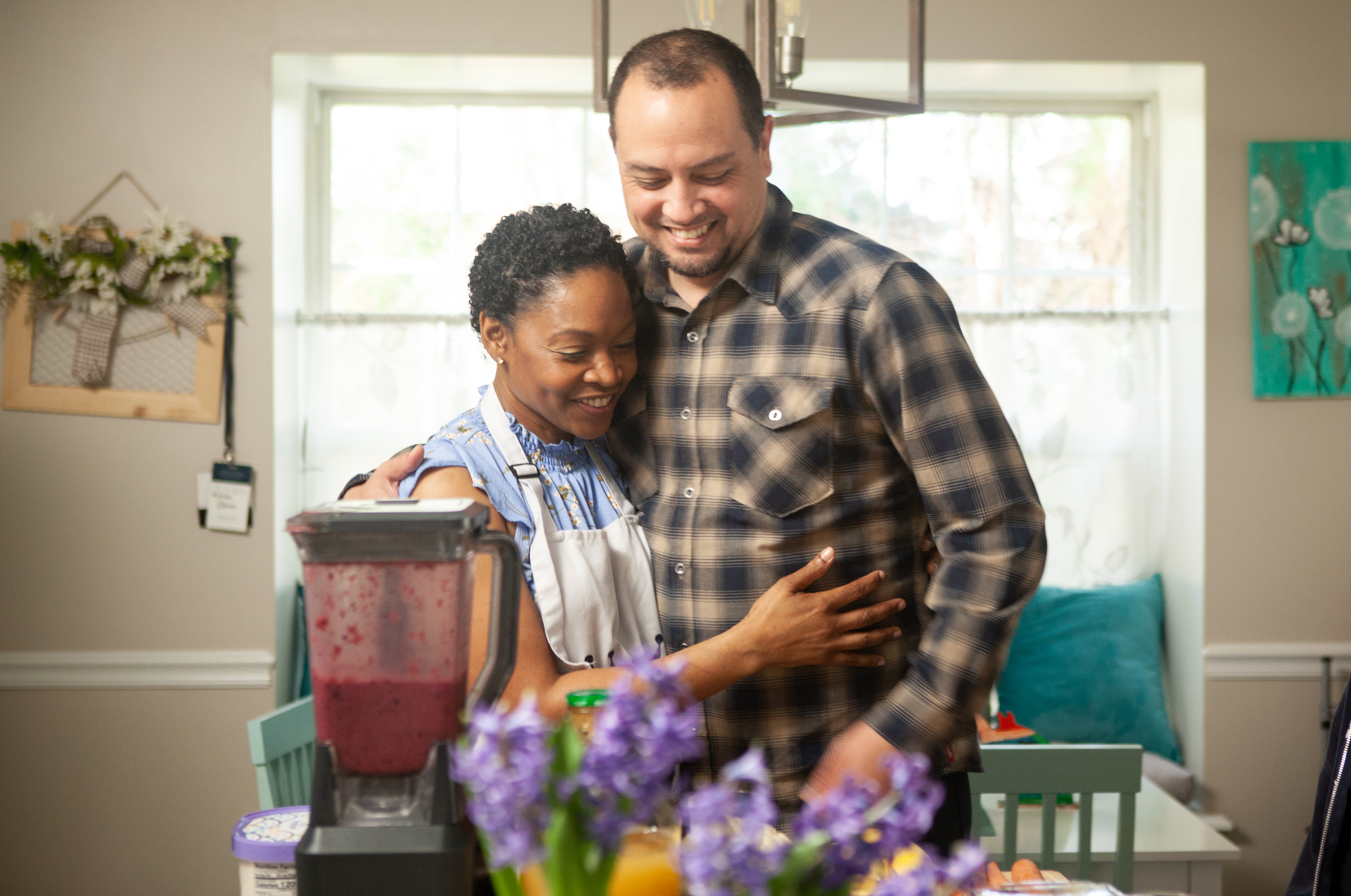 Relations après une chirurgie pour stomie ; un homme et une femme s’embrassant ;